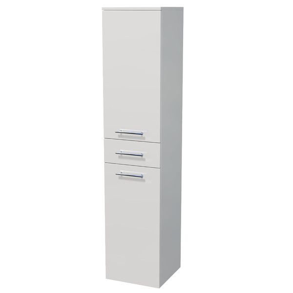 Závěsná vysoká koupelnová skříňka UNI SV 162/35 1Z 2D široká 35 cm má dvoje dvířka a jednu zásuvku s tlumeným dovíráním (soft-closing) a dvě stavitelné skleněné police. Úchytky jsou celokovové s lesklou povrchovou úpravou (chrom), případně může být skříňka v provedení bez úchytek (InnoTech Atira - Hettich Push to open).